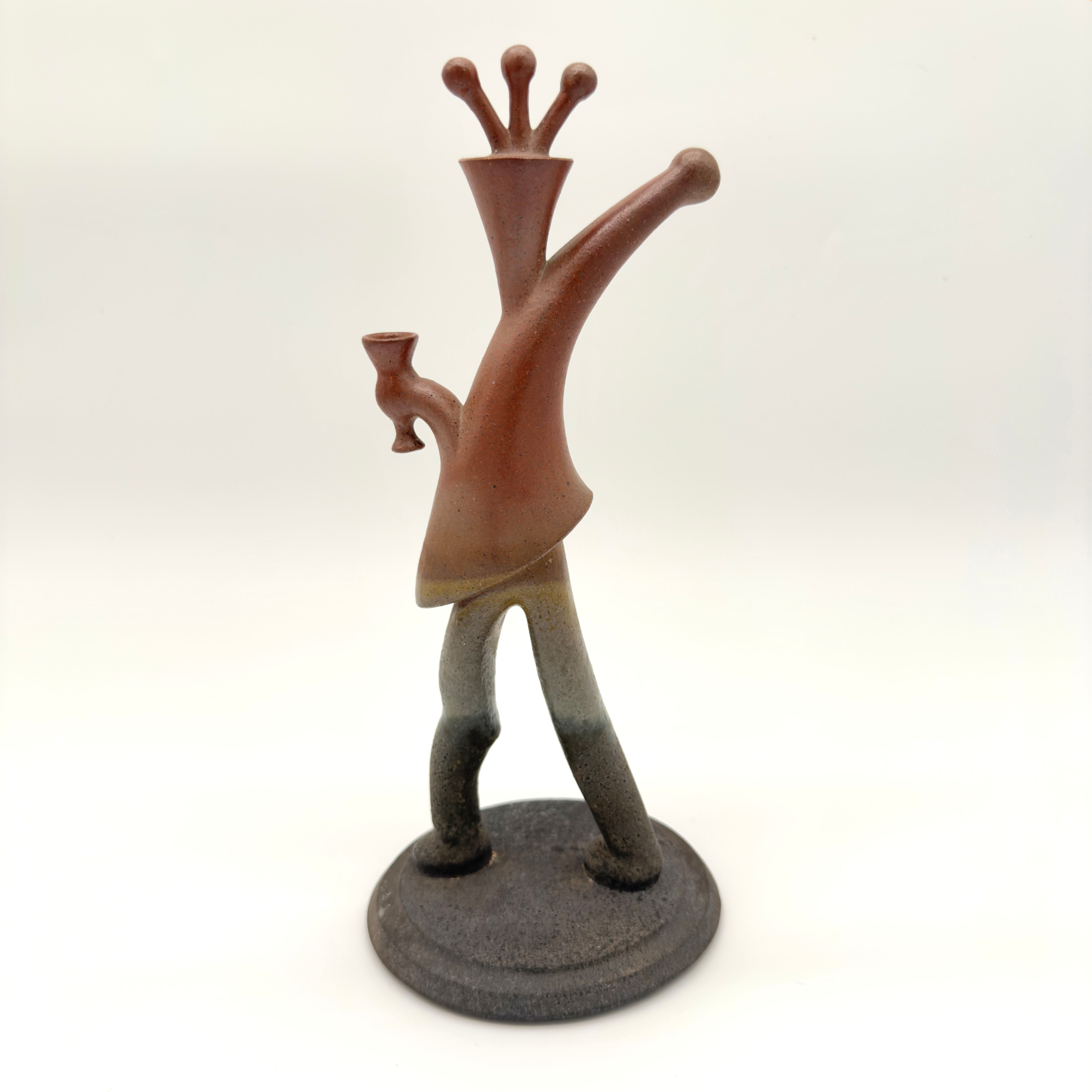 祝祭感あふれる楽しい雰囲気を凝縮した作品。シャンパンやクラッカー、ダンスをイメージした動きのあるフォルムが魅力的。備前焼の登り窯で生まれた自然な色彩が、パーティの華やぎを陶器に閉じ込めています。